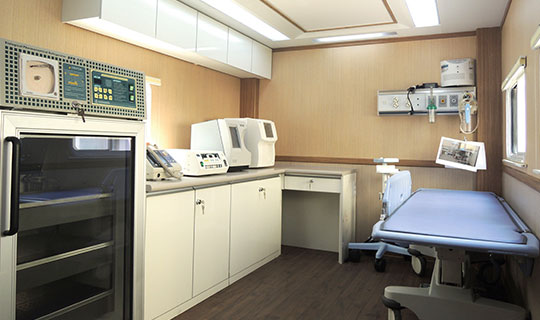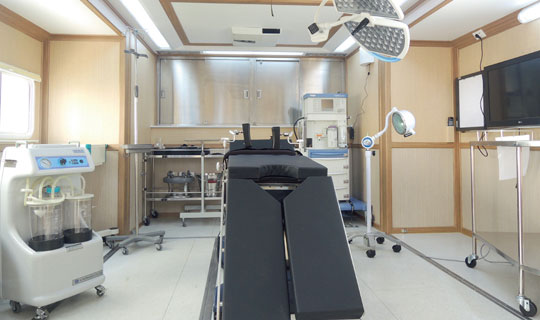 廣泰手術(shù)車通過層流凈化裝置達到艙內(nèi)環(huán)境萬級凈化標(biāo)準(zhǔn),整車集成供氧、制氧系統(tǒng),安裝手術(shù)床、無影燈及其他手術(shù)專用儀器設(shè)備,在應(yīng)急情況下實施手術(shù)救援。